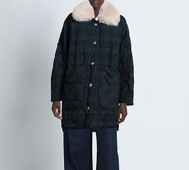 Ava Adore Cappotto reversibile trapuntato quadro blu/verde collo eco fur