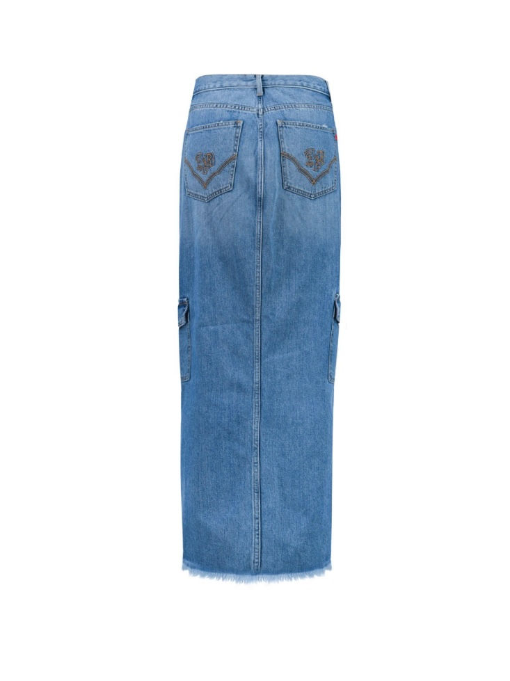Gonna cargo midi in denim, con spacco sul davanti.