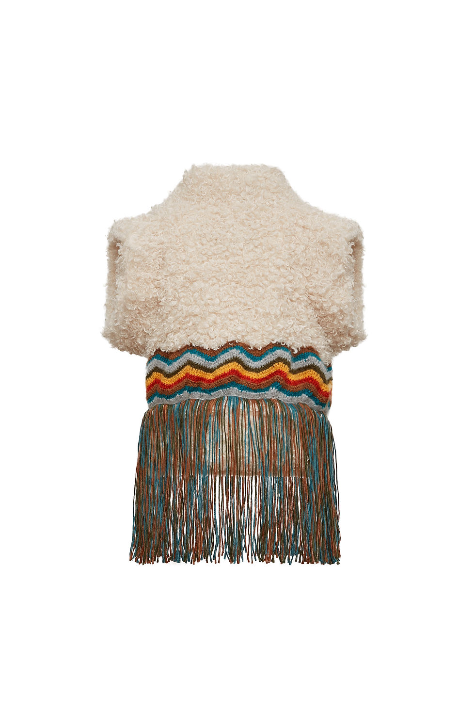 Composizione: 31% poliestere, 18% nylon, 51% viscosa. Collo in vera pelliccia di volpe