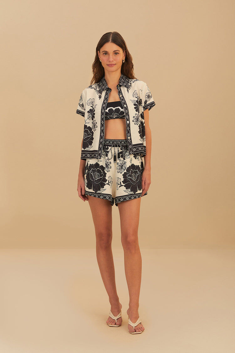 Off-White Flower Leopards Short, una deliziosa miscela di grazia e fascino selvaggio. Questo pezzo cattura l'attenzione con i suoi audaci motivi floreali in toni monocromatici, accentuati da giocose stampe. Il taglio rilassato assicura una vestibilità comoda e ventilata, mentre i dettagli, come il cordoncino con nappe, aggiungono un tocco di raffinatezza bohémien.