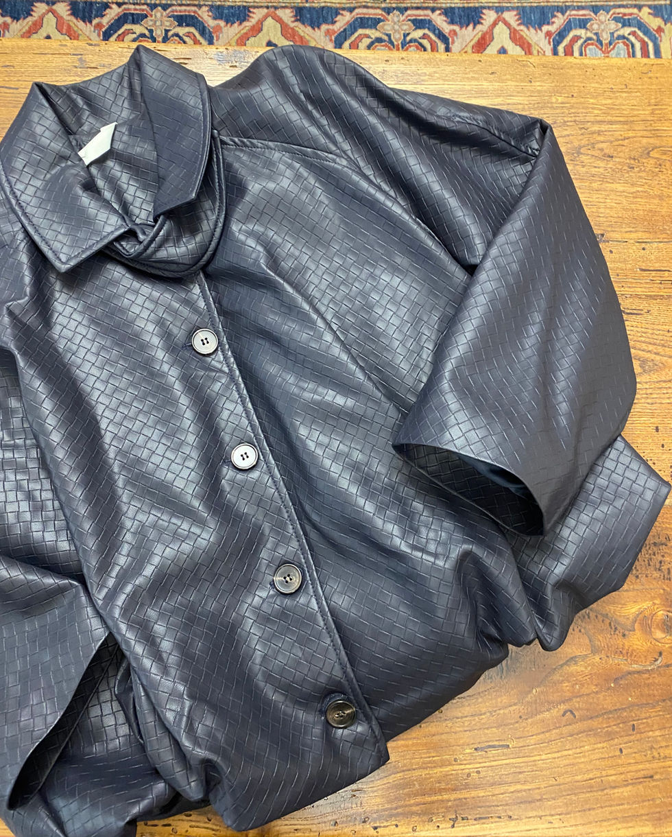 Giacca ecopelle intrecciata blu navy