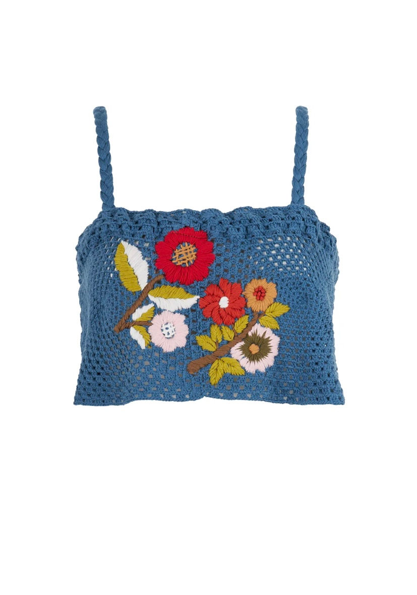 Tu Lizè Top crochet in cotone con ricamo blu